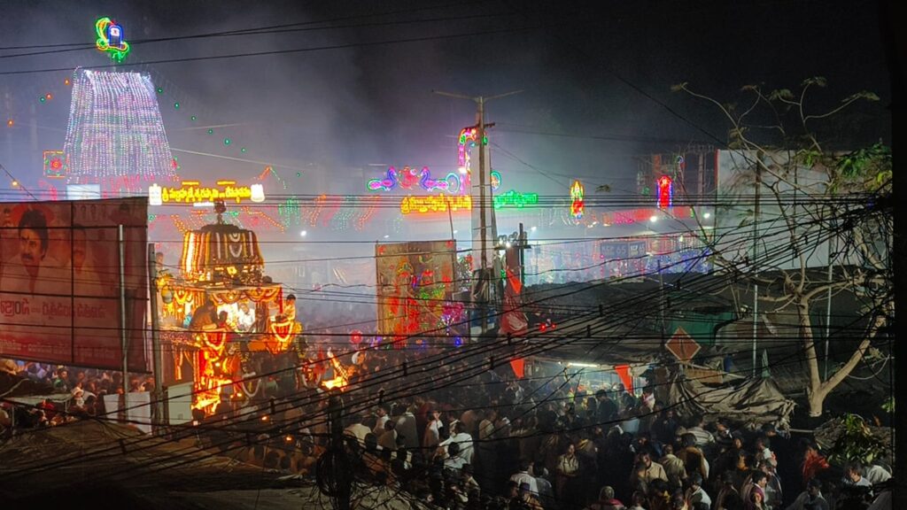 ఉత్సవాల చివరి రోజున స్వామివారికి పుష్కరిణిలో తెప్పోత్సవం నిర్వహించారు. విద్యుత్ దీపాలతో అలంకరించిన తెప్పపై స్వామివారు, అమ్మవార్లు జలవిహారం చేస్తూ భక్తులకు దర్శనమిచ్చారు. ఈ వేడుకను వీక్షించేందుకు పరిసర ప్రాంతాల నుండి భక్తులు వేలాదిగా తరలివచ్చారు. ఆలయ కమిటీ అధికారులు, పోలీసులు సమన్వయంతో భక్తులకు ఎలాంటి ఇబ్బందులు కలగకుండా భారీ భద్రతా ఏర్పాట్లు చేశారు.