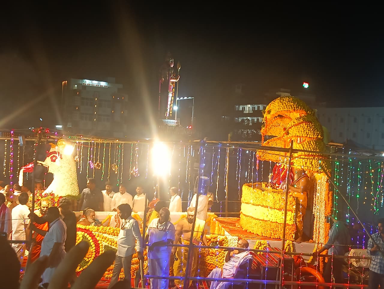 బ్రహ్మోత్సవాల్లో భాగంగా మూడవ రోజైన శనివారం రాత్రి నిర్వహించిన రథోత్సవం ఒక ప్రత్యేక ఆకర్షణగా నిలిచింది. స్వామివారు, అమ్మవార్లను సర్వాంగ సుందరంగా అలంకరించి, నూతనంగా సిద్ధం చేసిన రథంపై ఊరేగించారు. “హరోహర” నామస్మరణతో మోపిదేవి పురవీధులు మారుమోగాయి. భక్తులు భారీ సంఖ్యలో పాల్గొని, రథాన్ని లాగేందుకు పోటీపడ్డారు. గ్రామస్థులు ప్రతి ఇంటి ముందర స్వామివారికి మంగళ హారతులు ఇచ్చి భక్తిశ్రద్ధలతో స్వాగతం పలికారు. వాయిద్యాలు, డప్పు వేడుకలు, మరియు ఆకాశాన్ని అంటేలా సాగిన బాణసంచా ప్రదర్శన ఉత్సవ శోభను రెట్టింపు చేశాయి.